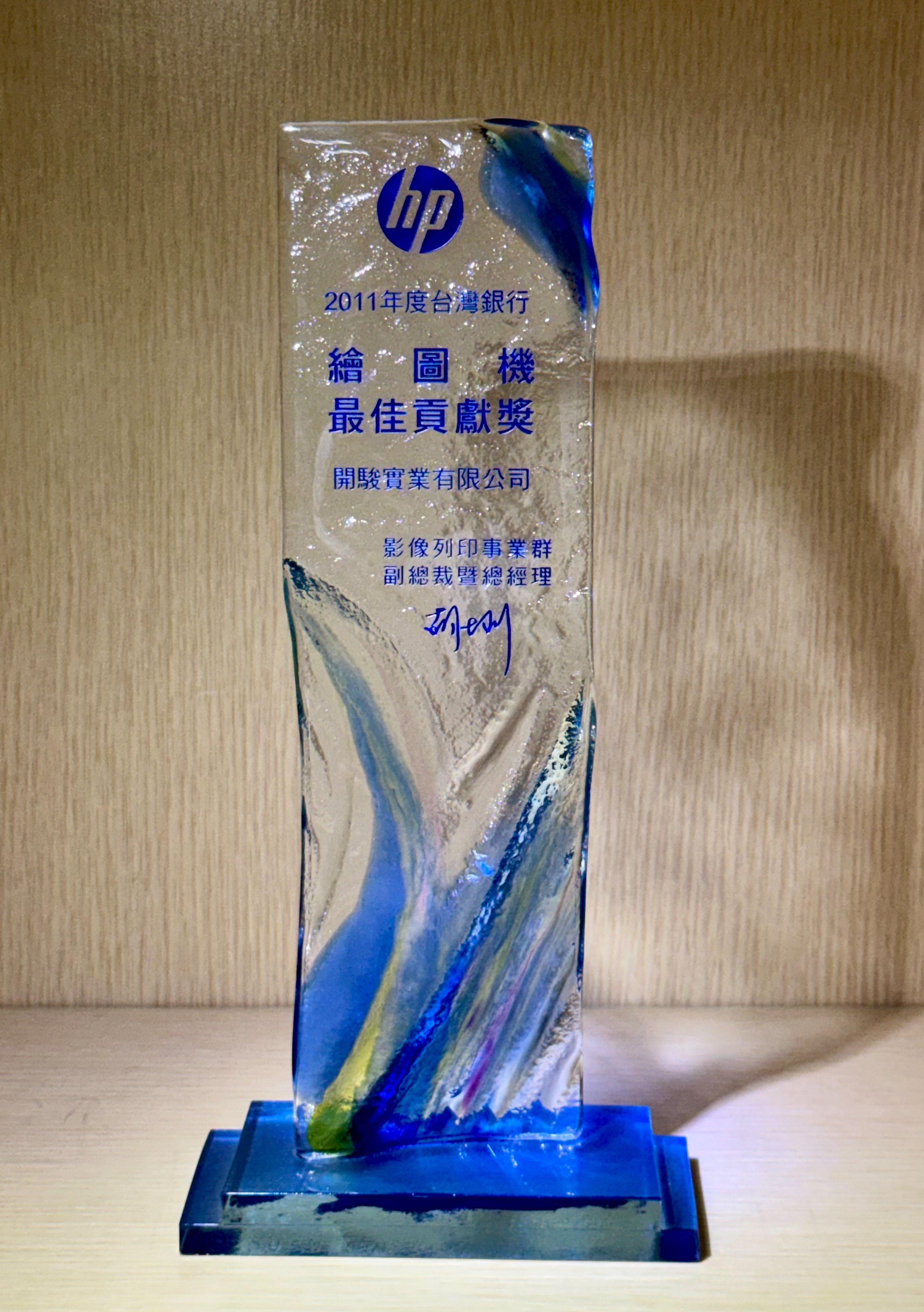 2011年度 榮獲 HP 台灣銀行繪圖機《最佳貢獻獎》