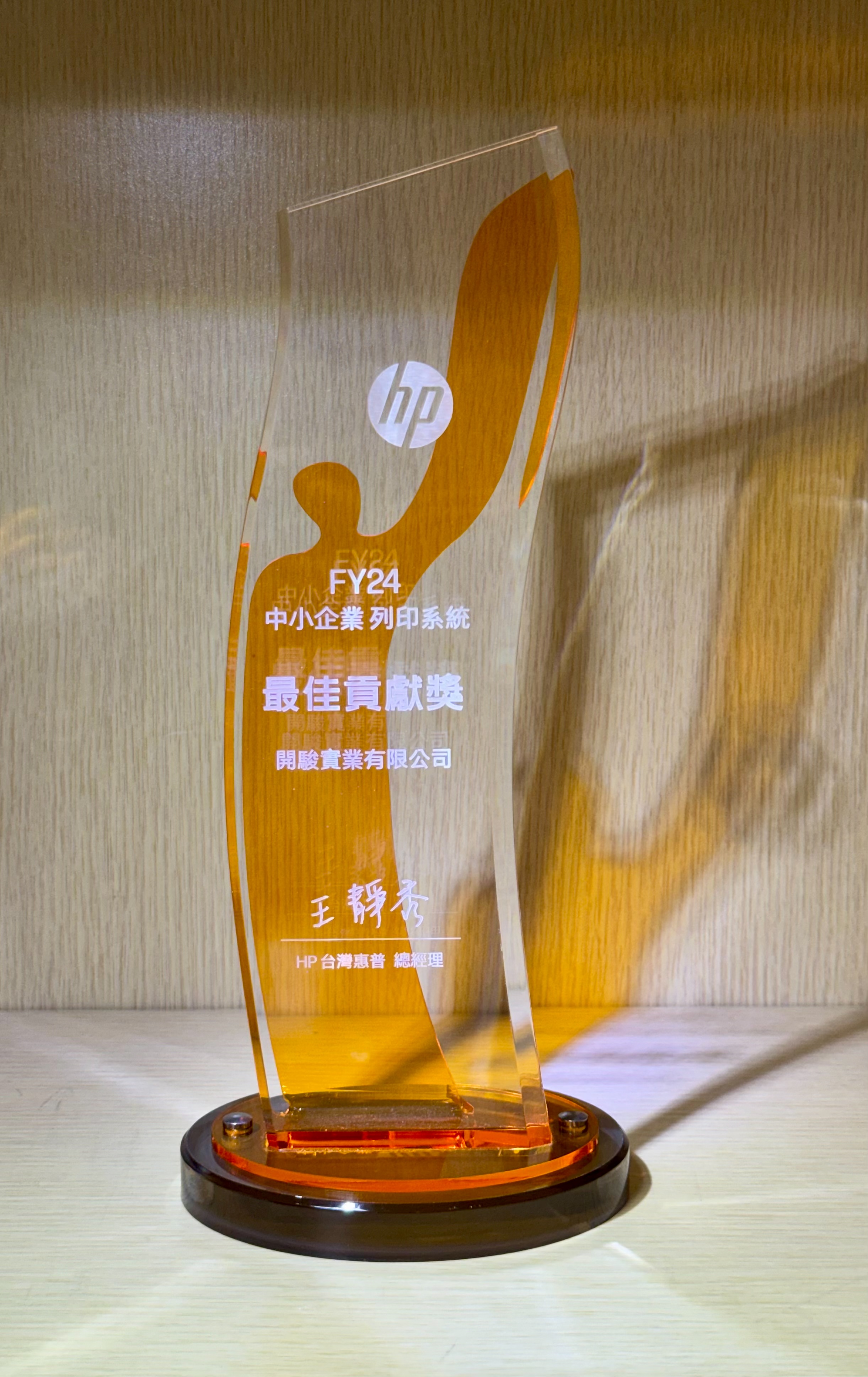 2024年度 榮獲 HP FY24 中小企業 列印系統 《最佳貢獻獎》