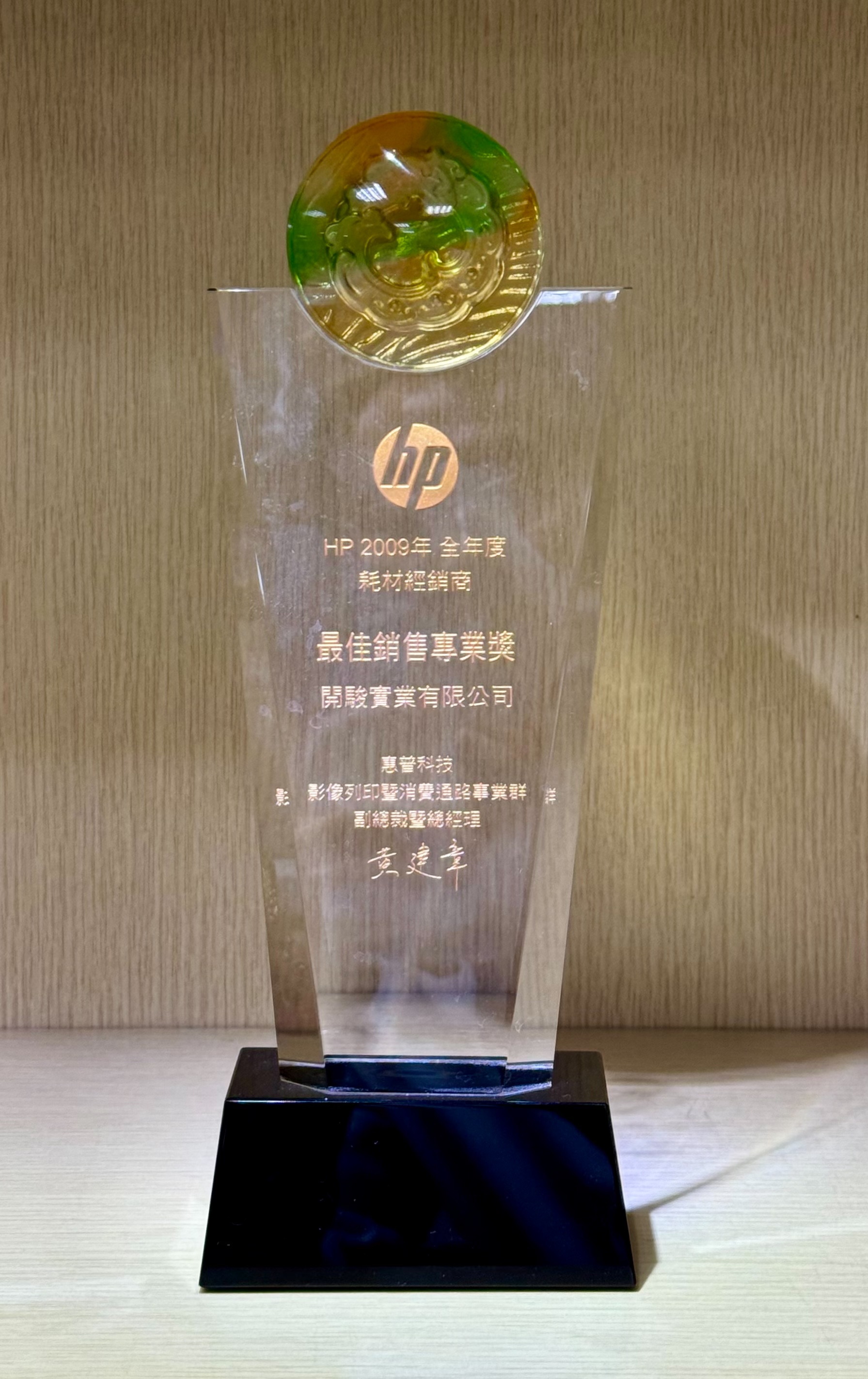 2009年度 榮獲 HP 耗材經銷商《最佳銷售專業獎》