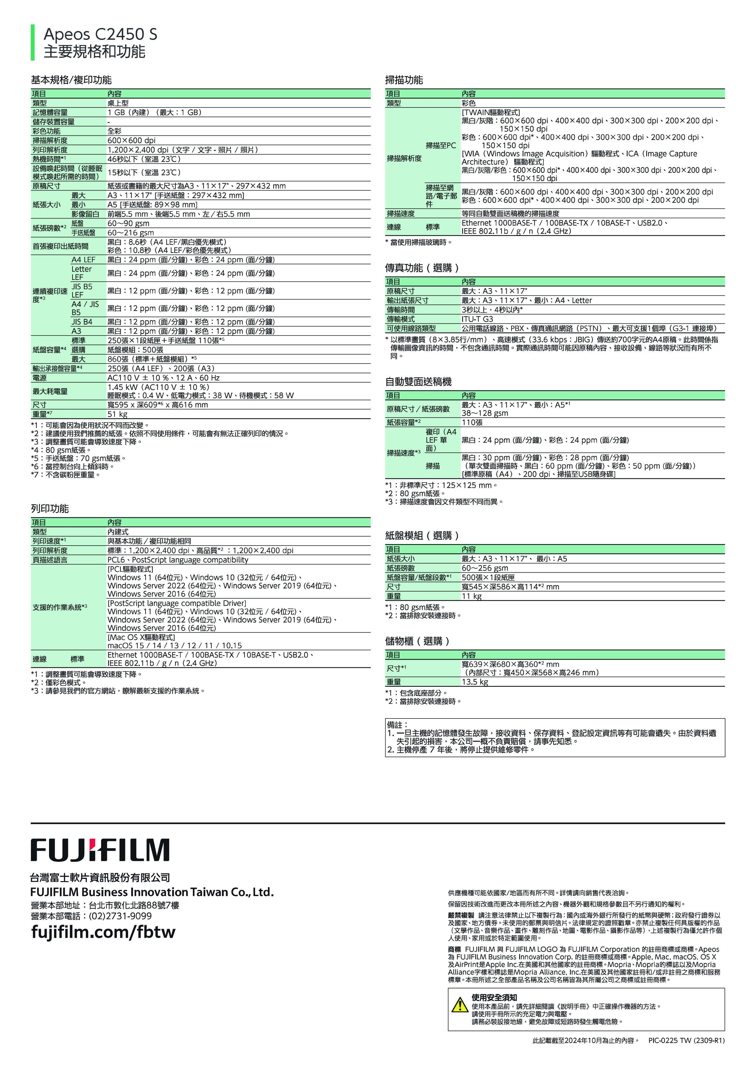 FUJIFILM Apeos C2450S A3 彩雷多功能複合機 (TC101903)